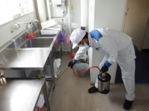 本日は焼津市内にある宿泊施設で防虫の点検と施工をさせて頂きました。