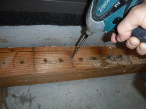 屋根下になる構造で雨による劣化やコンクリート地盤のため著しい湿気からは守られていましたが、コンクリートは水分を保つため直接木材を置いてしまうとシロアリが好む水分を木材に与えてしまいます。