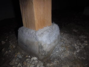 束石の劣化は床のたわみの原因となり床板の寿命を短くさせると共に耐震性にも影響を与えます。