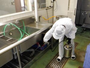 厨房内では清掃や予防対策を行い生息されないように徹底した管理をしていますが、人が出入りする場所は構造的に隙間があるため侵入されやすい場所になります。