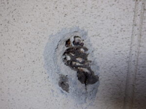 建物定期点検をしていると、外壁や床下、天井裏などでドロバチの巣をよく見かけます。