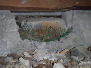 写真は御主人自身で補修した通気網ですが、破損していることに気付き周辺をよく見るとネズミらしき小動物が食べたと思われる木の実の殻がありました。