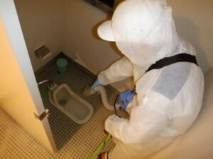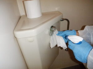 ノロウイルスは常温で10日、低温下では1ヶ月以上も生存すると言われ、乾燥にも強いため乾燥した嘔吐物などがチリになって空気中を舞い吸い込んで感染したり、ドアノブ・家具などに付着したウイルスに触れて手指から口に入り感染をしてしまうので、感染者が出た場合は嘔吐物などを除去するだけでなく、しっかり除菌を行うことが大切です。