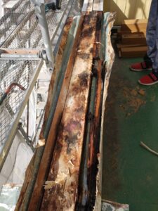 しかし、木材を取り板金をめくってみると、内部の木材はたっぷりと水を吸込み、カビと腐りで真っ黒く土のようになっていました。
