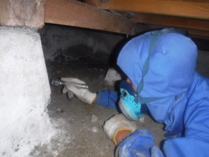 写真はその時の様子ですが、青いツナギを着て床下の点検をしている様子は何処から見てもプロそのものです。