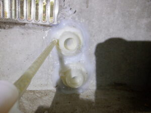 本日は焼津市内のお宅で基礎のひび割れ補修を行いました。