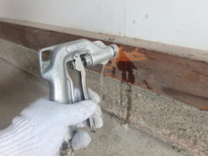 今日のシロアリ工事は、鉄骨造の倉庫で土間がコンクリートになっている現場でした。