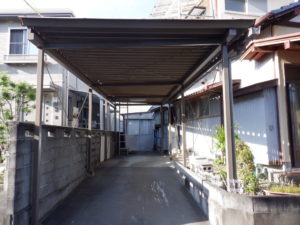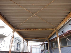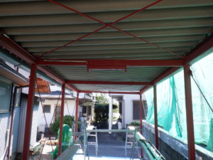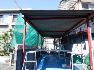 本日はカーポートの鉄骨部分のケレン、錆止め、ウレタン仕上の段取りとなりました。