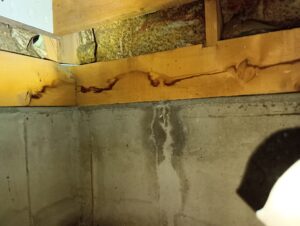 築年数が30年を経過したばかりの建物で外観を見た限りでは大きな問題が無いように見えましたが、床下を確認する土台には雨漏りの染み跡や排水管の水漏れ、基礎にはひび割れ、そして断熱材が全く入っていない無断熱の住宅でした。