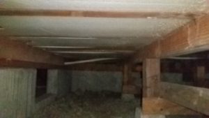 2015年に白アリ予防工事を行って5回目の定期点検でしたが、昨年は目立たなかった床の断熱材の脱落が所々見られました。