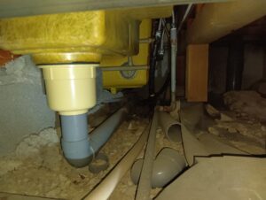 浴室はタイル張りではなくユニットバスでしたが30年ほど前のものなので現在のものよりも断熱性能が低く、トイレだけでなく建物全域に断熱材が入っていない無断熱の住宅でした。