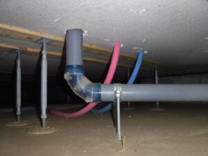 床下点検口を開けてみるとコンクリート土間には本来はないはずの土が確認できました。