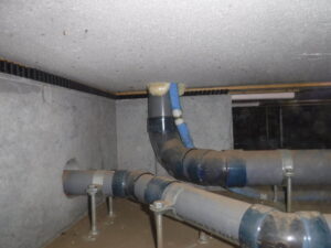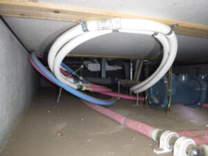 断熱材は発泡スチロール系で濡れた様子はないようですが、配管に残っている土の様子から考えると、ある程度の高さまで水が入ってきたのではと思います。
