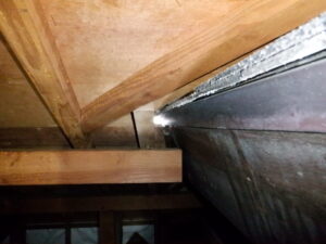 また、建物は以前に増築をされていますが、小屋裏に入って調査をすると既存部との境に隙間が確認されました。