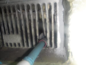 先ずは、どこから侵入したのか床下内を調査すると、基礎に設けられた通気口から配管を通してあり、そこに侵入するには十分な隙間が出来ていました。