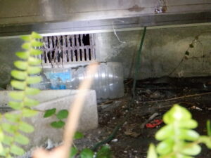 壁の中を駆け上がる音がするとのことでしたので侵入口を探すために外回りを調べてみると、ガラリが錆びて隙間ができているのを発見しました。