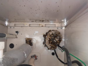 本日は、藤枝市内の方から給湯器の中に蜂が巣を作ったと連絡があり駆除に行ってきました。