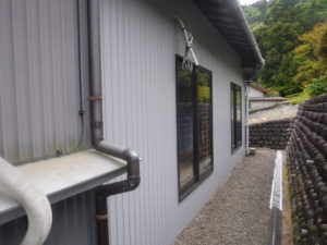 本日は板金工事(外壁)、電気工事(エアコン復旧)の段取りとなりました。