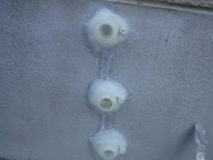 通常は床下から補修作業を行いますが床下から作業できない場合は外側から補修を行います。